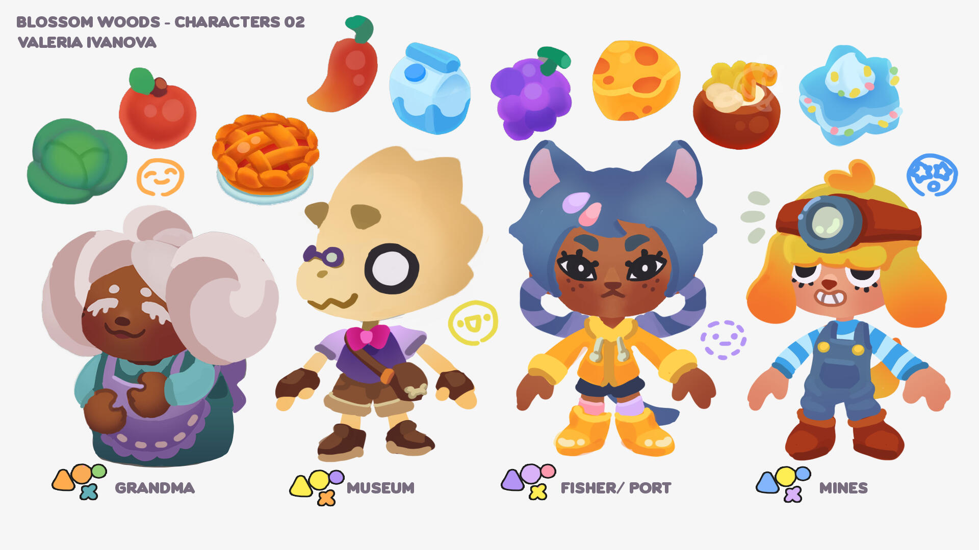 Supermarket Village (2022) - Sample of leveling and concept of characters, animals, crops, assets and buildings. UI and mock ups.